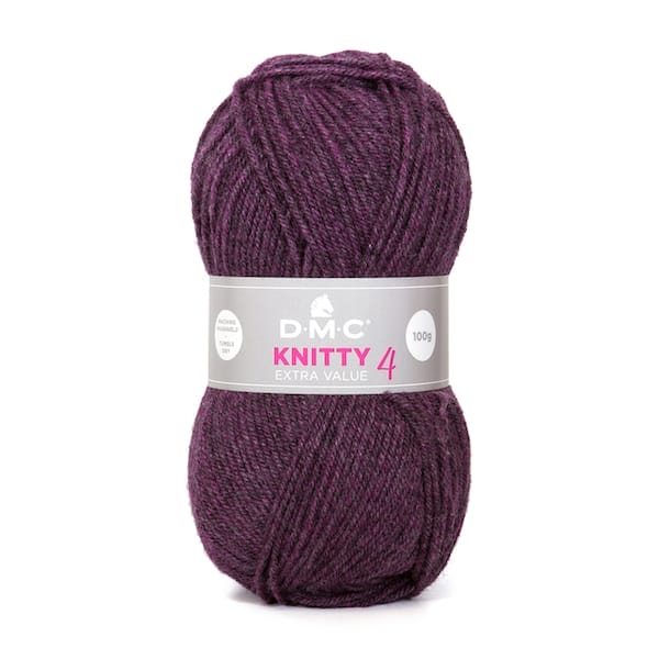 DMC Knitty4 pflegeleichtes Acrylgarn ist ein hochwertiges Synthetikgarn der Stärke ‚DK‘. Das leichte, maschinenwaschbare moderne Garn ist eine ideale Wahl für Kleidungsstücke.